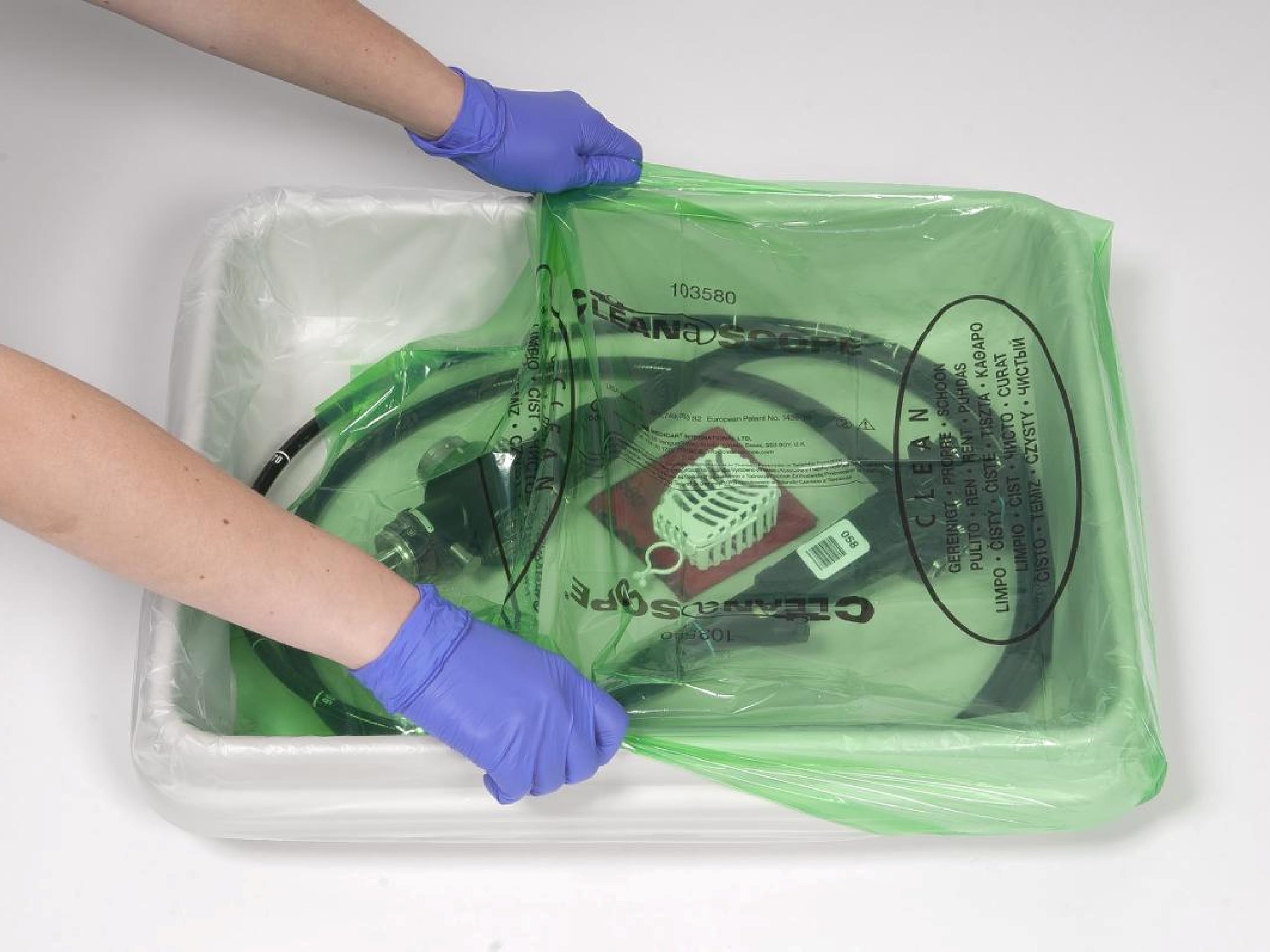 Sammen med endoskopivaskemaskiner og -tørkeskap har sykehuset investert i tre transportvogner av merket Cleanascope. I vognene kan personalet transportere endoskopene til og fra vaskerommene. På veggen henger en dispenser med sterile overtrekk til kurvene i transportvognen. Overtrekkene er fargekodet, så grønn betyr rent og rød betyr urent endoskop.