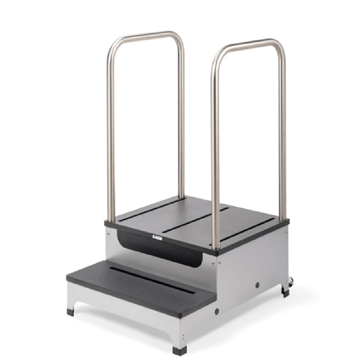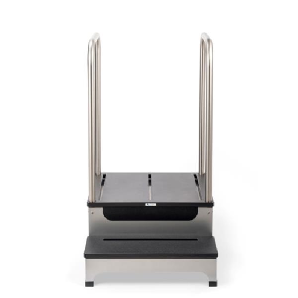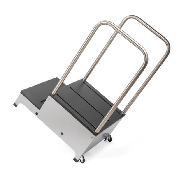 2-Step Weight Bearing Platform er designet for å hjelpe til med posisjonering av detektor og pasient for vektbærende bilder av underekstremitetene. 2-Step Platform har flere slots for detektor for fleksibel posisjonering. Stativet er robust med glatte flater som er enkle å rengjøre og har hjul for enkel forflytning. Vekt: 46 kg. Vektbegrensning: 340 kg.