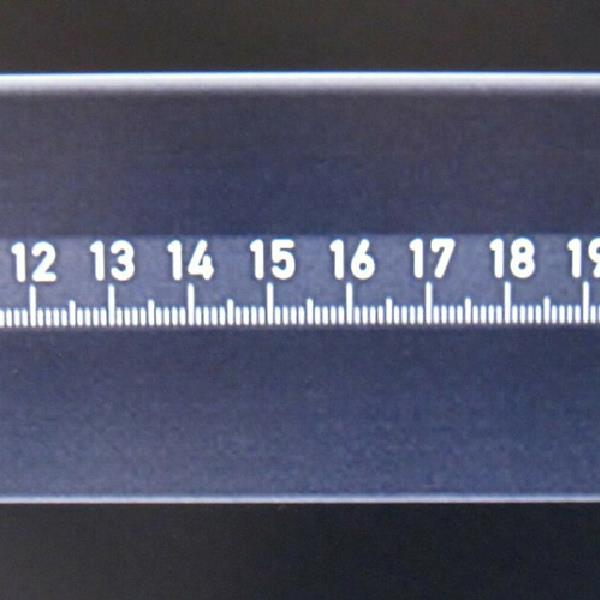 Hygienisk linjal med innkapslet volframgravering. Skala 0-30 cm. Hver strek viser 1 mm. Myke kanter som er behagelig for pasienten. Knagg til oppbevaring medfølger.