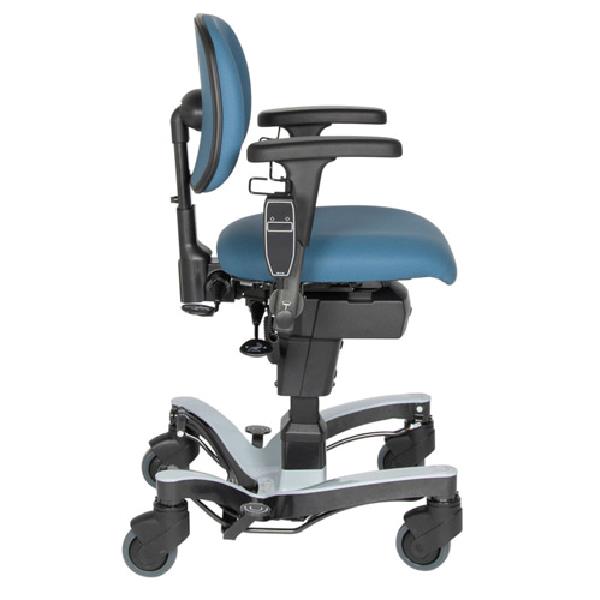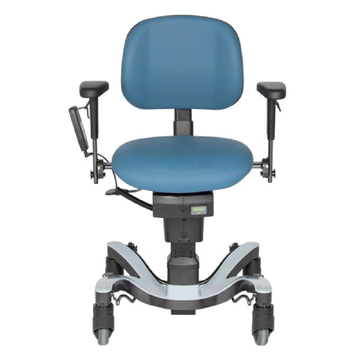 Pasientstol benyttes ved røntgen av overekstremiteter, hvor det er viktig at pasienten er stabil i forhold til riktig posisjonering. Pasienten kan enkelt sette seg ned og reise seg opp fra stolen ved hjelp av armlener og den stabile basen på stolen. Hjulene på stolen gjør at stolen er lett å flytte rundt på alle gulvtyper. Stolen gir personalet en optimal ergonomisk holdning da stolen er låst med fotpedal og høydeinnstilling gjøres via håndkontroll. Gir optimal stabilitet for sittende pasienter med en ryggstøtte som gir en trygg og stabil base. Mulighet for ekstra bred sitteflate da armlenene kan foldes ned. Forflytning fra f.eks rullestol er tilrettelagt med armlener som kan foldes ned.