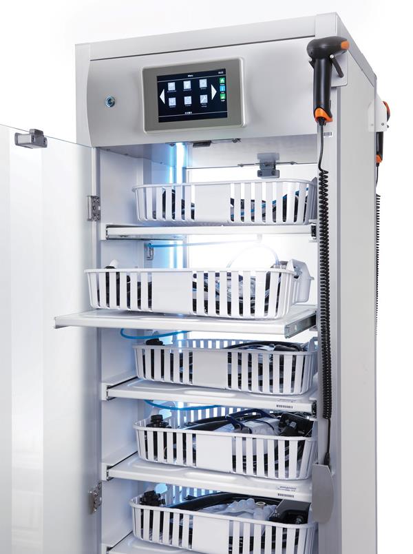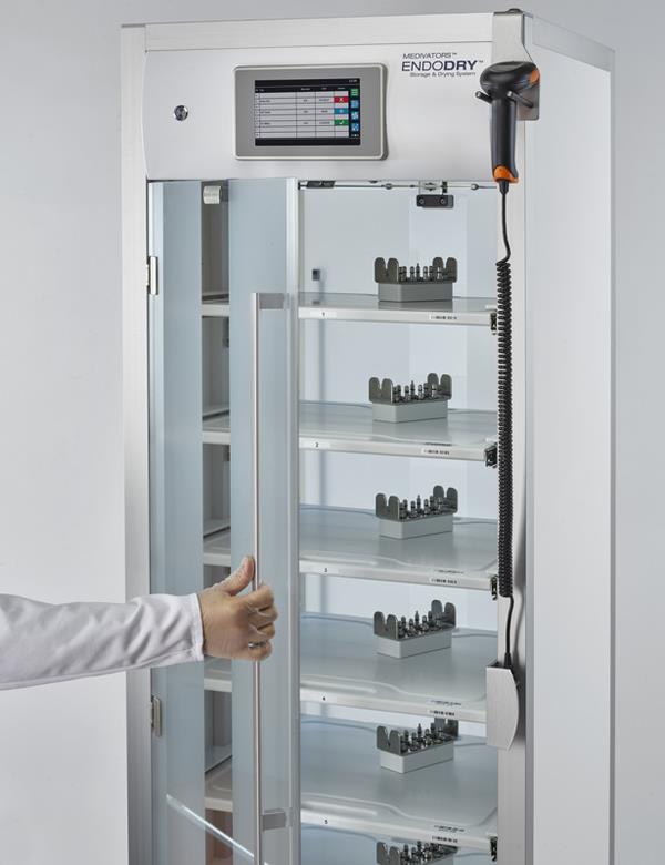 ENDODRYTM-skapet er innredet som et tørke- og oppbevaringsskap til åtte endoskoper, der skopene oppbevares i en spesialkassett. Kassetten er den samme som brukes i Advantage® Plus vaskemaskinen og gir enkel og sikker håndtering av de dyrebare skopene.