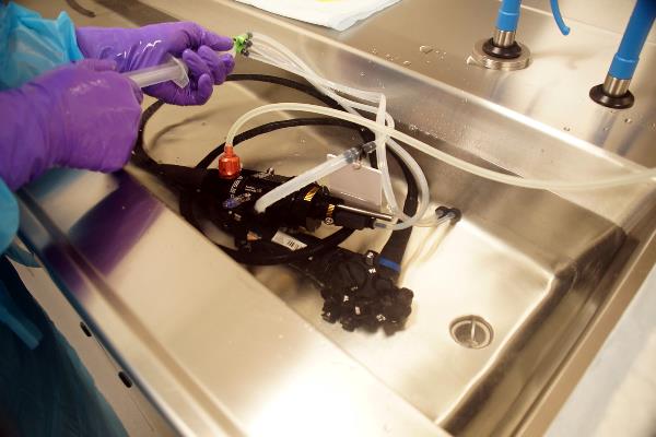 Avanserte vaskebord spesielt fremstilt til manuell rengjøring av fleksible endoskop. Du kan vaske skopene dine i full lengde i det store vaskekaret.