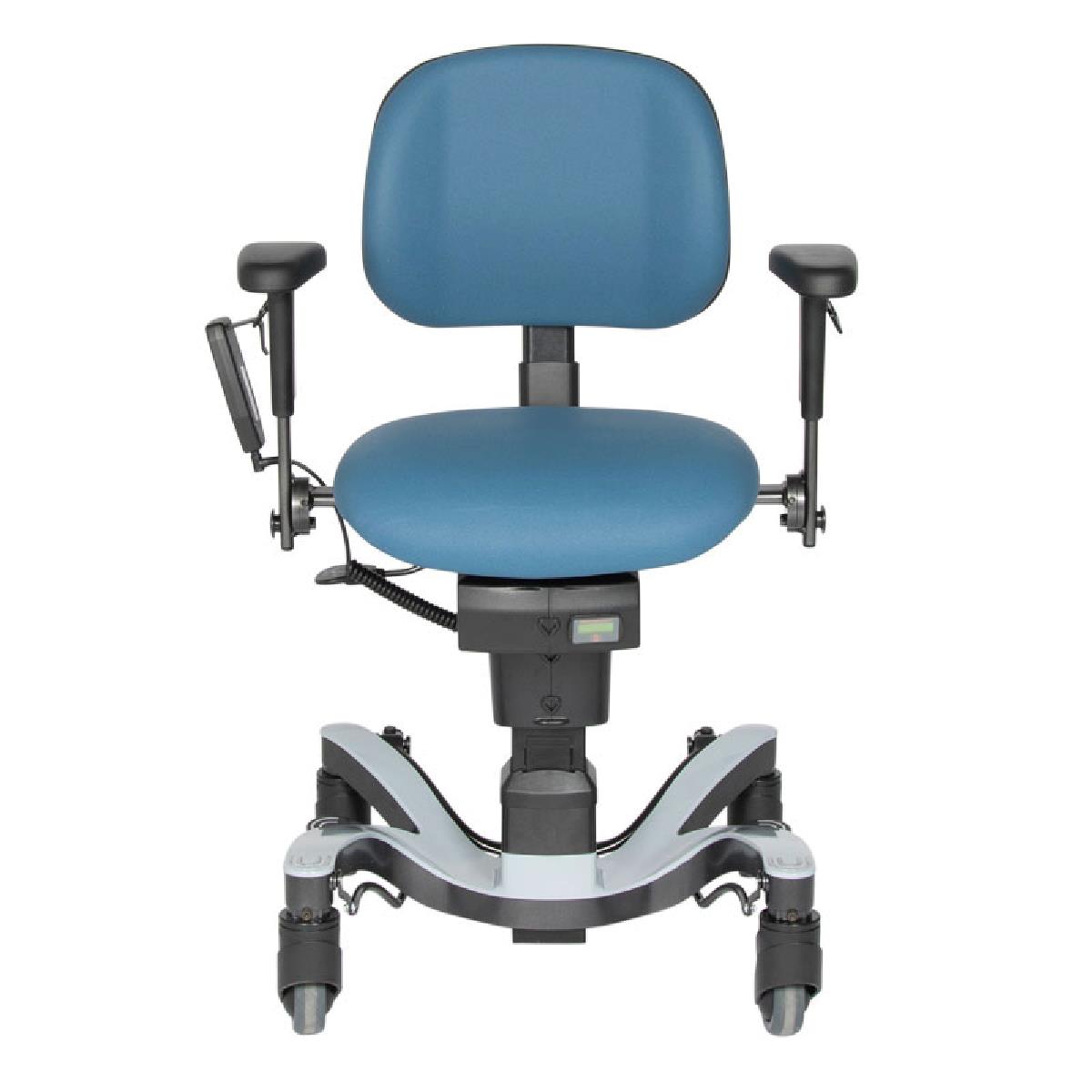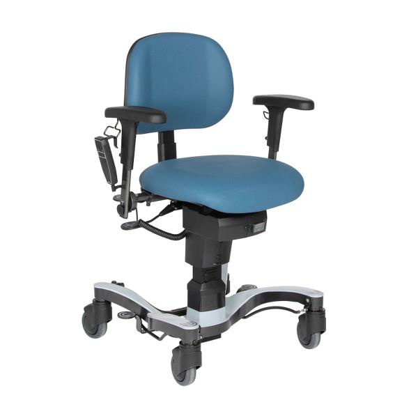 - Stolen gir personalet en optimal ergonomisk holdning da stolen er låst med fotpedal og høydeinnstilling gjøres via håndkontroll.