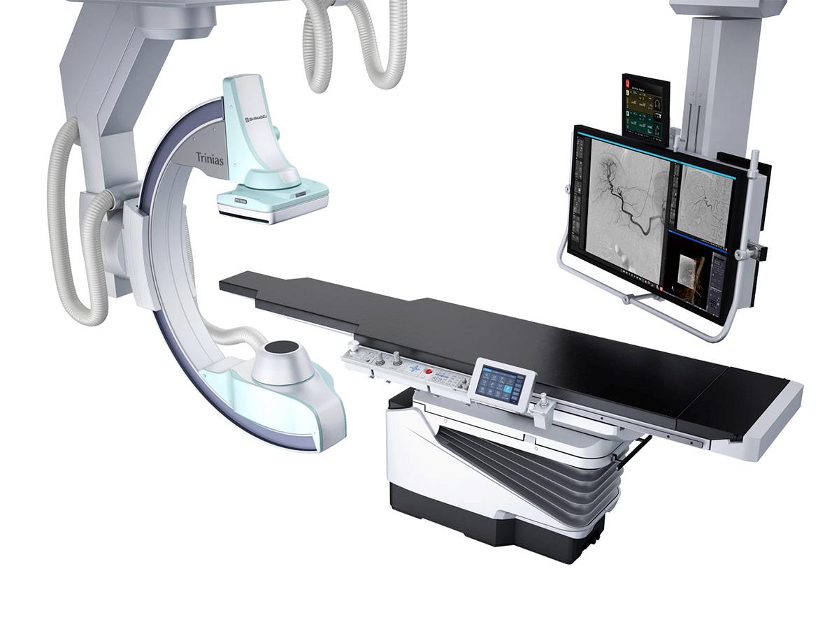 Shimadzu Trinias er velegnet til gjennomføring av alle hjerte- og karinngrep. Trinias er kjennetegnet ved en meget enkel, intuitiv betjening og brukervennlige autoposisjoner. Med den nye minneenheten (Direct Memory Unit) kan forhåndsinnstilte posisjoner raskt kalles frem. Dette muliggjør meget rask justering av apparatet; en uvurderlig funksjon for effektiv gjennomføring av intervensjoner. Cyber Grip-håndtaket gjør det enkelt å betjene systemet med én hånd. Forskjellige sensorer i systemet øker sikkerheten for både pasient og bruker, og minimerer samtidig automatisk avstanden fra detektor til pasient uten risiko for sammenstøt med pasienten.