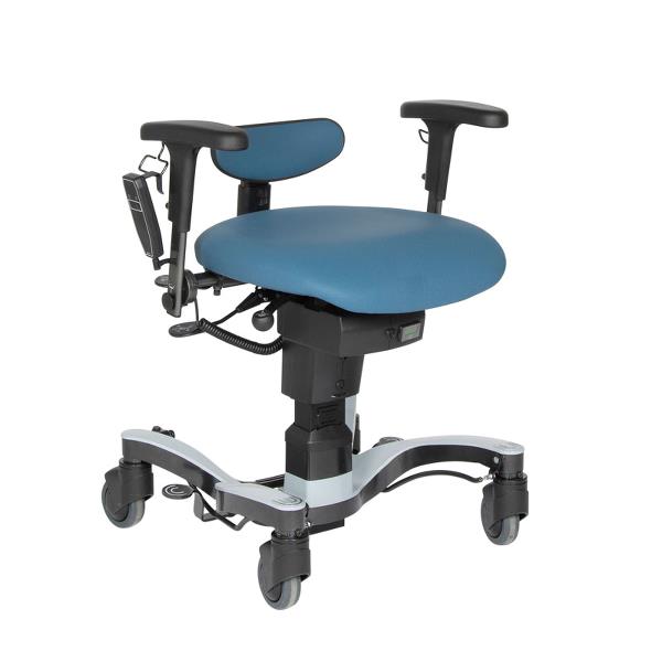 - Stolen gir personalet en optimal ergonomisk holdning da stolen er låst med fotpedal og høydeinnstilling gjøres via håndkontroll.